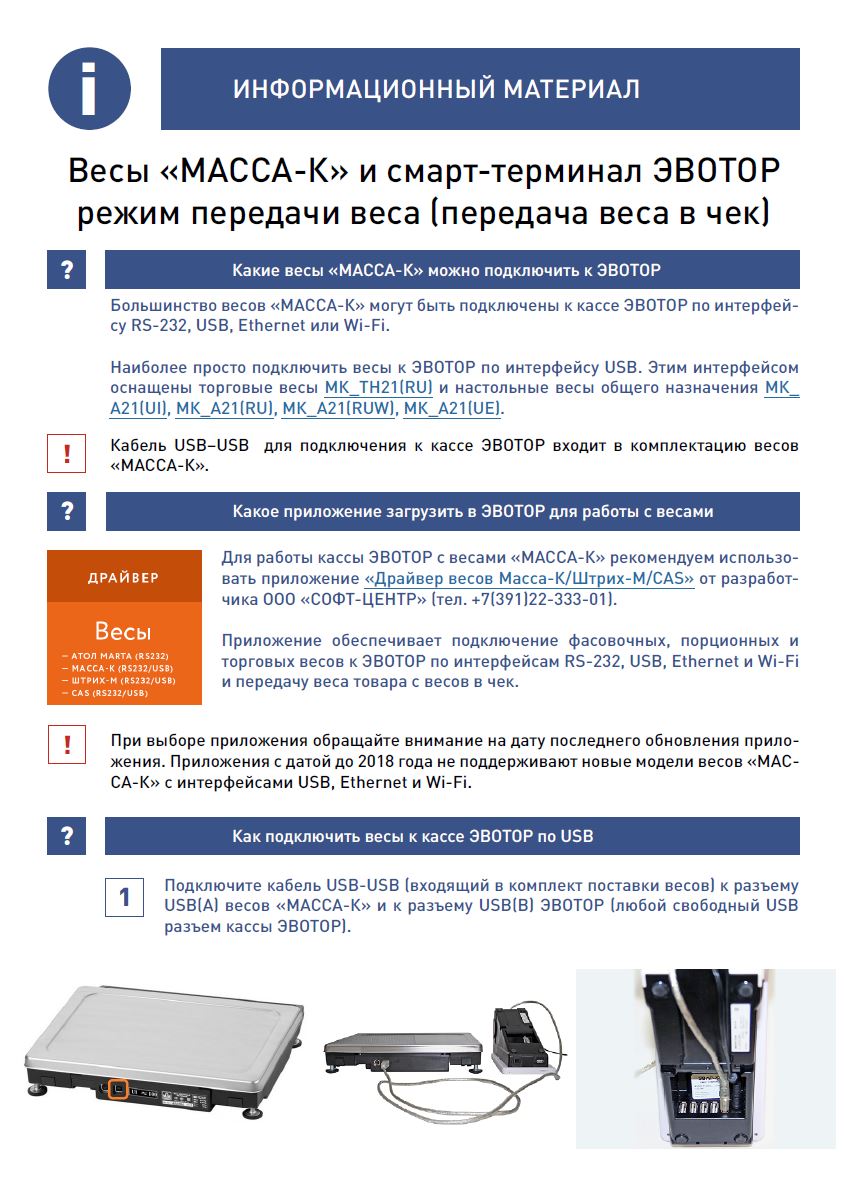 Подключаем весы масса-к к Эвотор