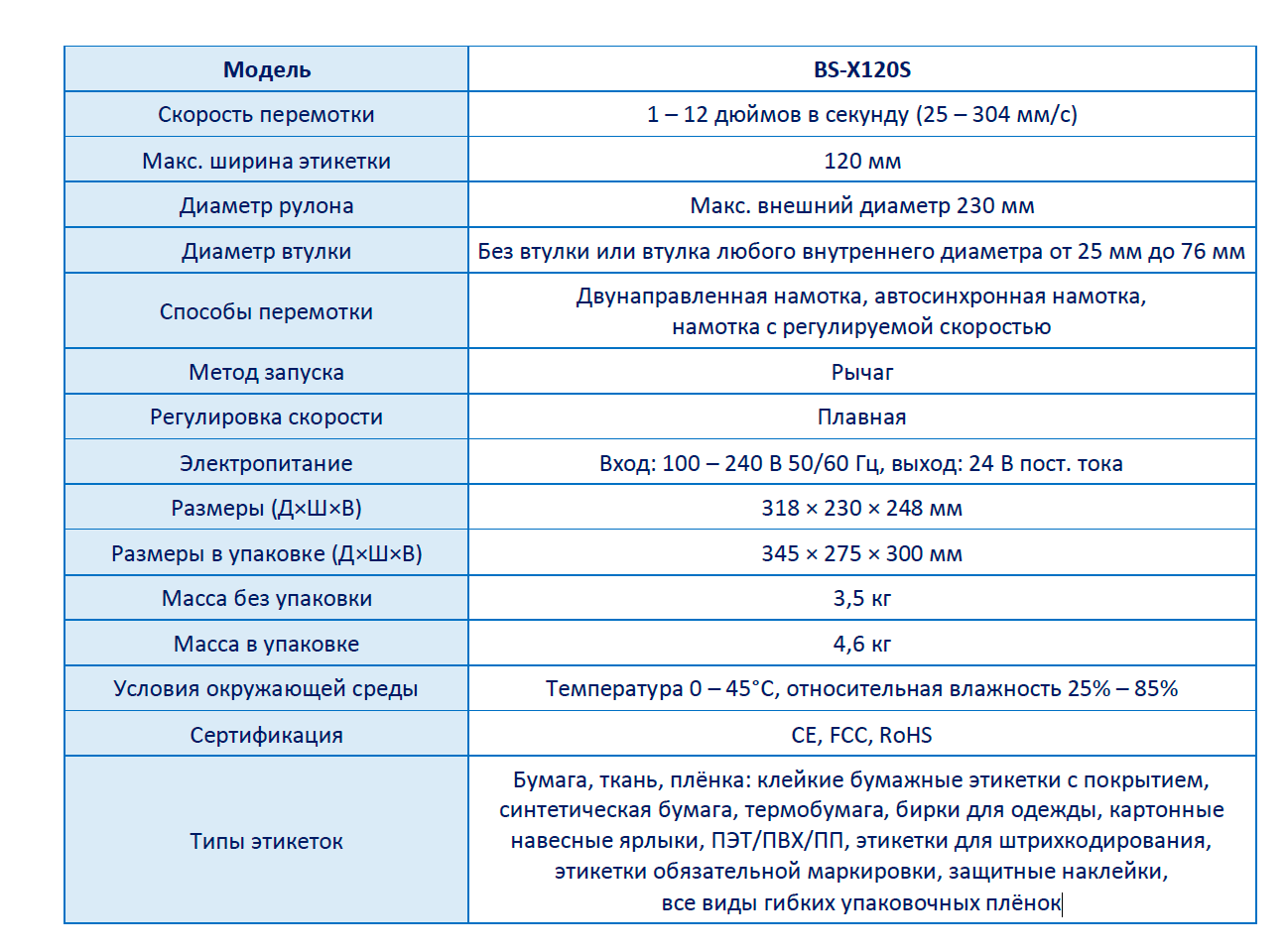 Смотчик для этикеток без втулки BSmart BS-X120S • Двунаправленная намотка • Перемотка рулонов без втулки • Автоматическая синхронизация • Регулируемая скорость